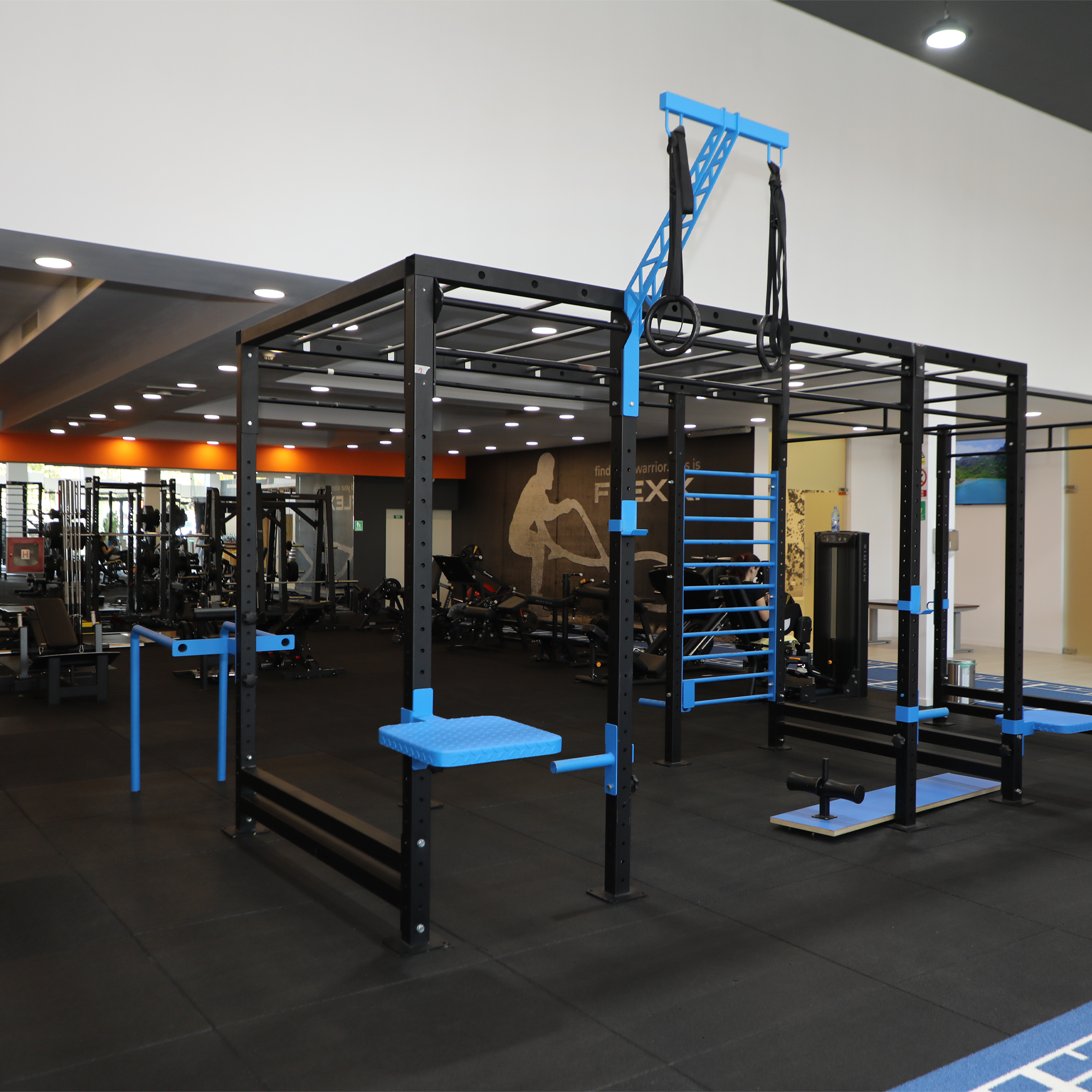 - Cușcă pentru CALISTHENICS – un spațiu dedicat exercițiilor de forță cu greutatea corpului, echipat cu accesorii pentru a-ți îmbunătăți performanțele.